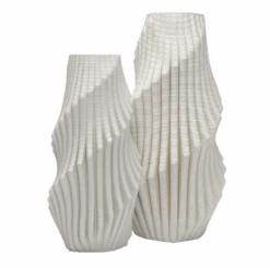 Intricate ribbed white textured small vase in twisted white ceramic. Gorgeous entry table or accent shelf piece.