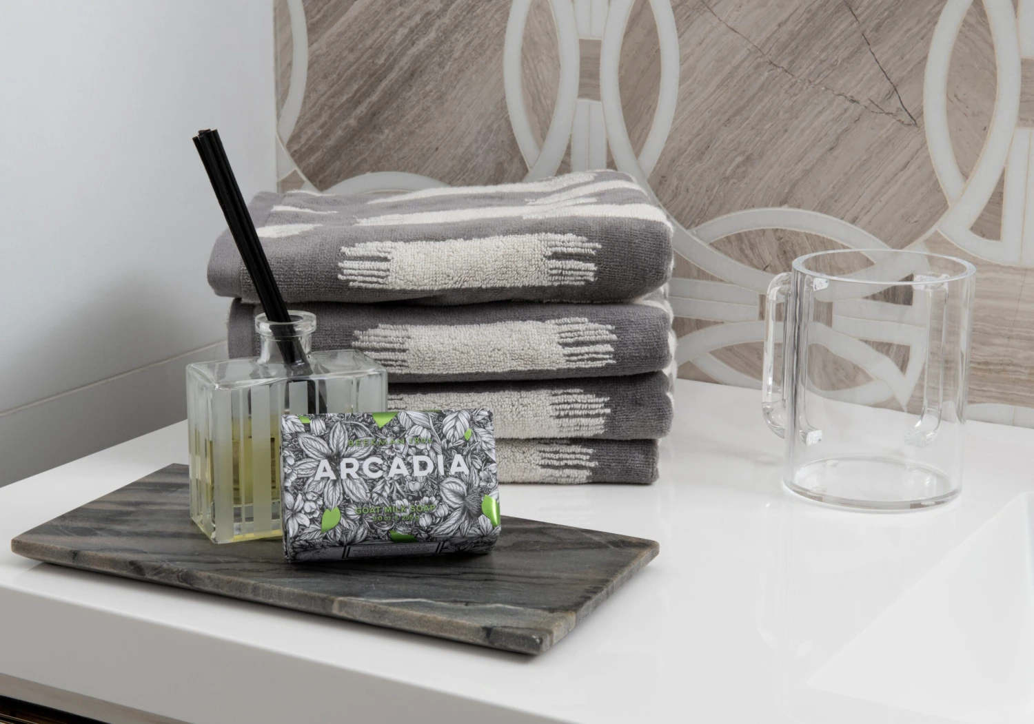 Highly absorbent kitchen hand towel, in beautiful shade of gray with white. A perfect addition to your kitchen, bathroom, and powder room sinks.