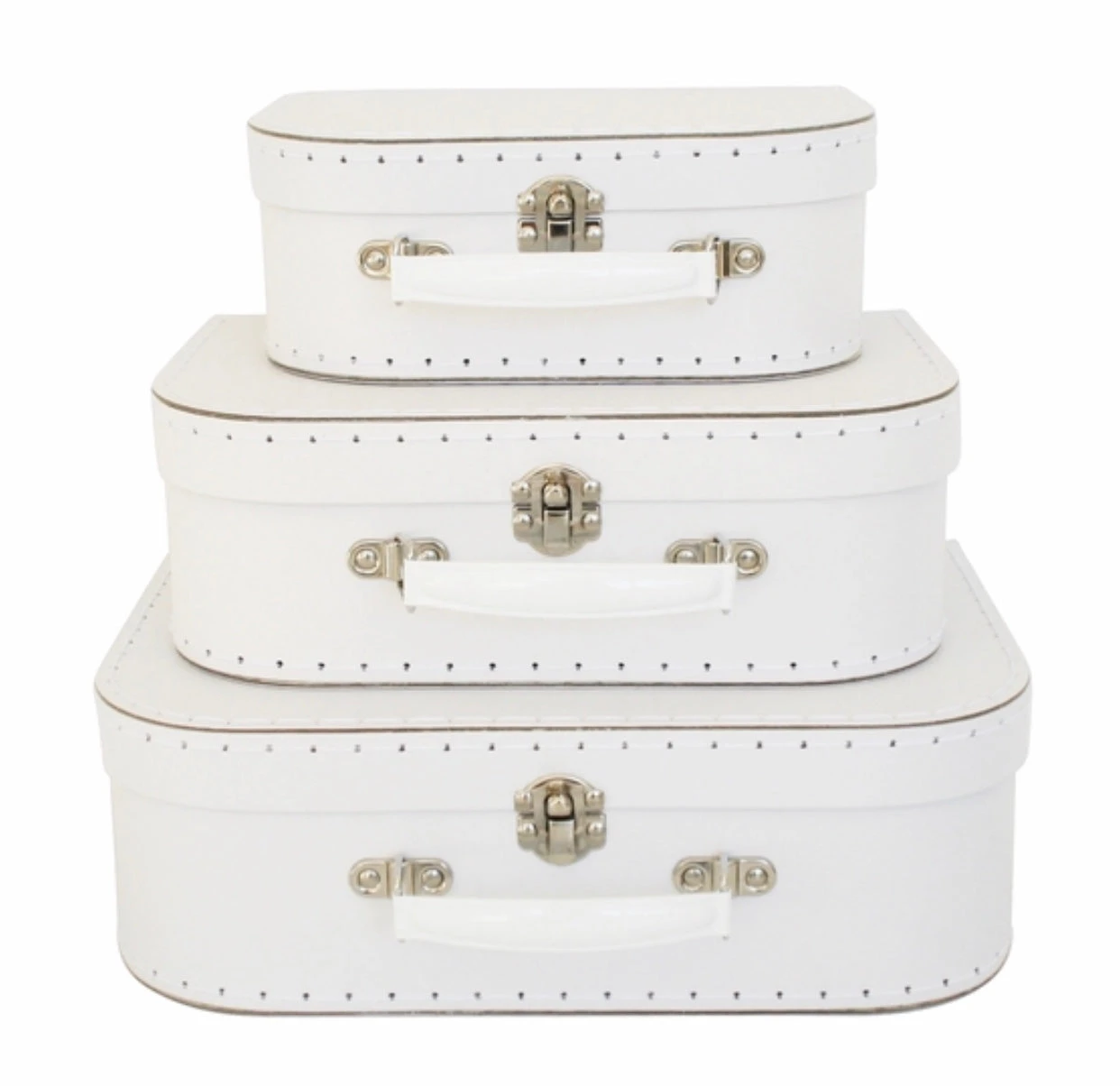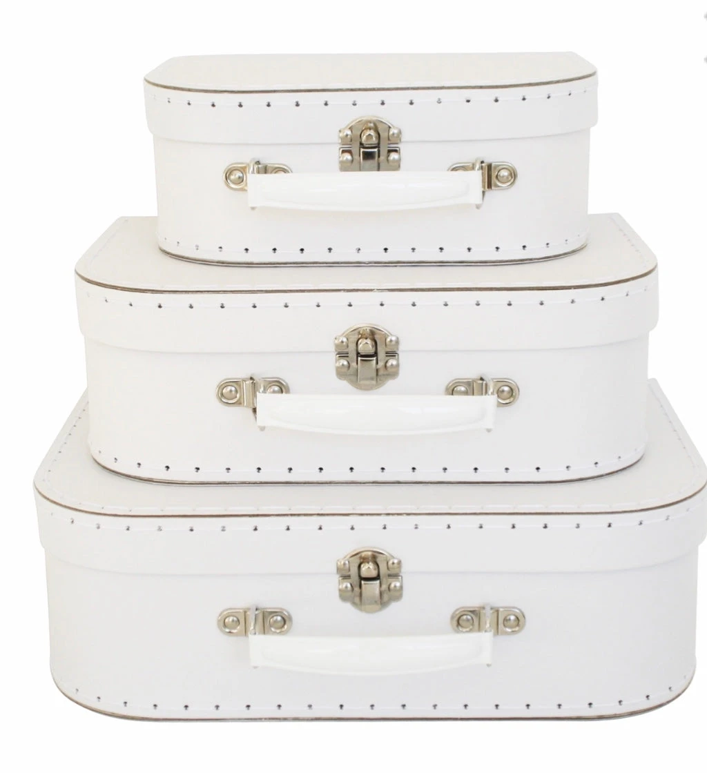 Sweet unisex kids carry case suitcase set 3 pc. White exterior & grey spot interior. Great quality handles and stitching.